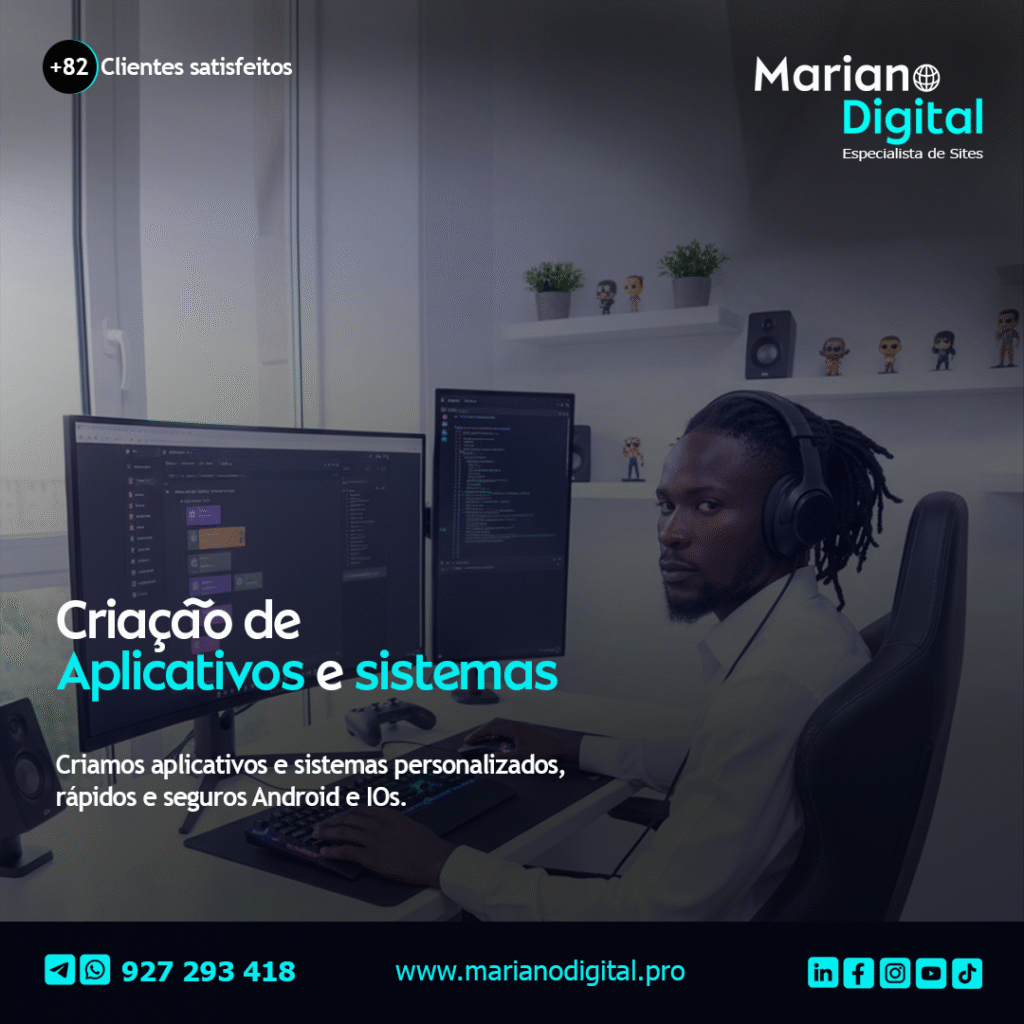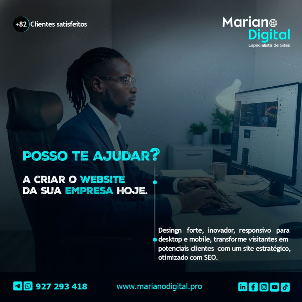 Tenho domínio de UI/UX Design, integração de ferramentas digitais, implementação de estratégias de SEO para aumentar a visibilidade dos projetos. Cada site que desenvolvo é pensado para funcionalidade, performance e conversão, atendendo às necessidades de empresas e empreendedores em Angola e no exterior.